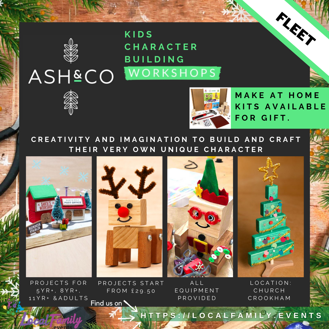 Come and enjoy a festive treat for your children. Escape from the real world at a creative family workshop where your Mini-Maker can make a fun wooden character or car. Your child will use their creativity and imagination to build their own unique wooden character or scrappy racer car in our proper woodworking workshop in Crondall. Suitable for children aged 5 and up, our Mini-Maker sessions are a non-digital escape from everyday life that will encourage creativity and teach your children hands-on skills in a safe environment. Under current regulations, places are limited to five 'bubble' bench spaces per session spaced out across the workshop.Each bench space is for one mini-maker (£29.50) over 5yrs with one supervising adult.